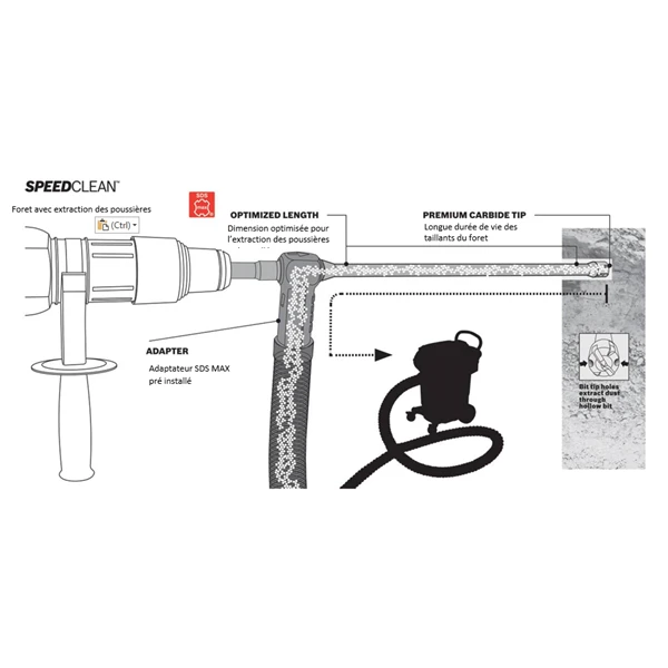 - Avec 2 trous d’aspiration pour une évacuation optimale de la poussière de perçage, afin de conserver un environnement de travail propre.