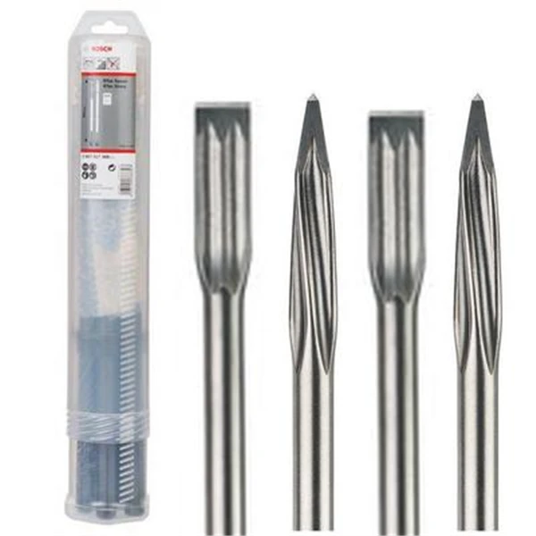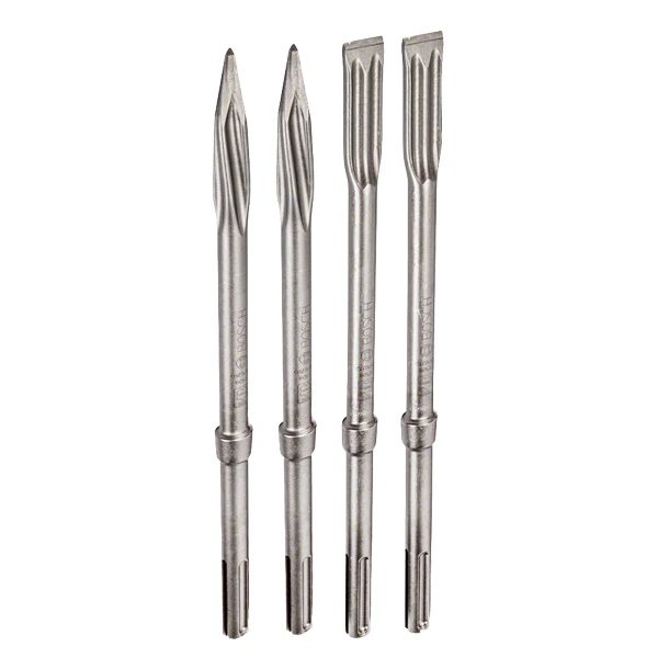 Jeu de 4 burins pour béton SDS Max – Bosch – 2 burins pointus et 2 burins plats RTec