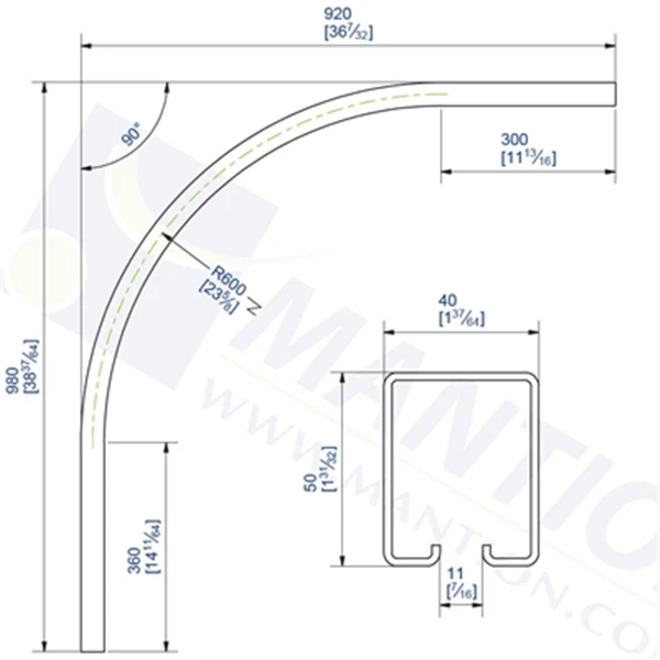 Cette courbe de rail Mantion 5040C est indispensable pour une ouverture à 90°.