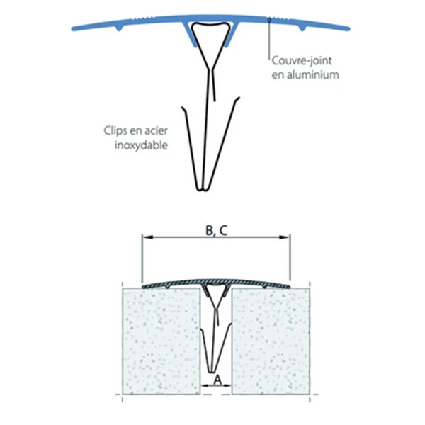 Couvre-joint rigide en angle, simple et facile à installer grâce à ses clips en acier inoxydable. En aluminium, il peut être peint à la teinte RAL de votre choix.