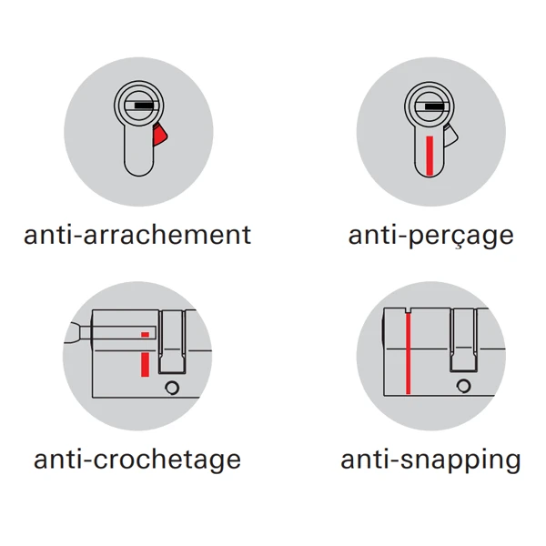 - Profil européen normalisé avec bouton : le côté intérieur se ferme sans clé.