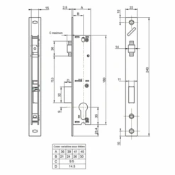 Serrure à Encastrer 1 Point Pêne Dormant Et Rouleau – Metalux 880 – Coffre 39 X 180 Mm – Axe 24 Mm
