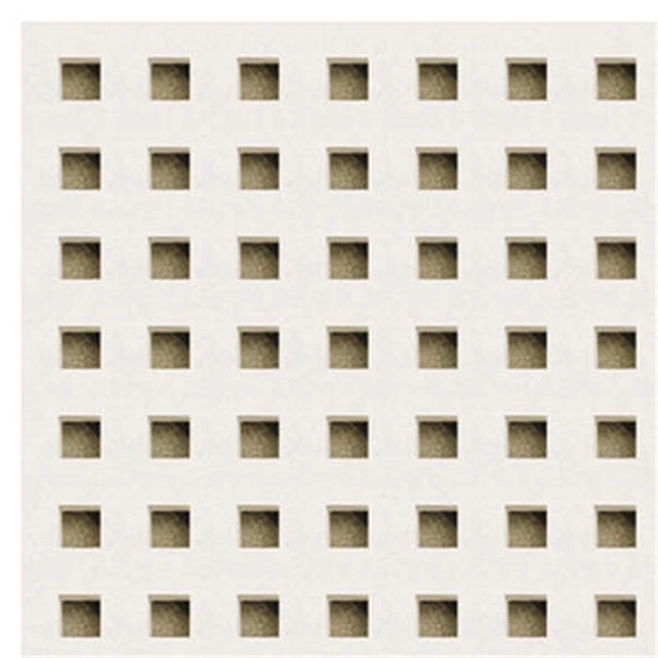 Plaque de plâtre Cleaneo® conforme à la norme NF EN 14190, avec perforations carrés de 12 mm en continu sur la totalité de la plaque. Elle comporte au dos un voile acoustique pour assurer l’absorption acoustique.