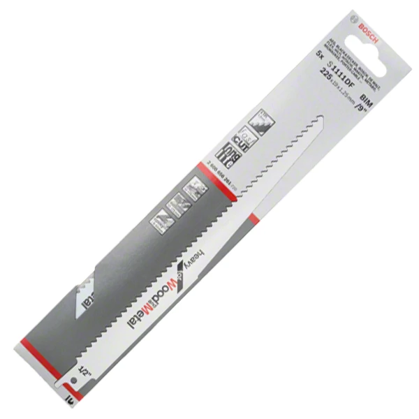 5 lames de scie sabre pour découpe bois et métal – Bosch S1111DF Heavy for Wood and Metal