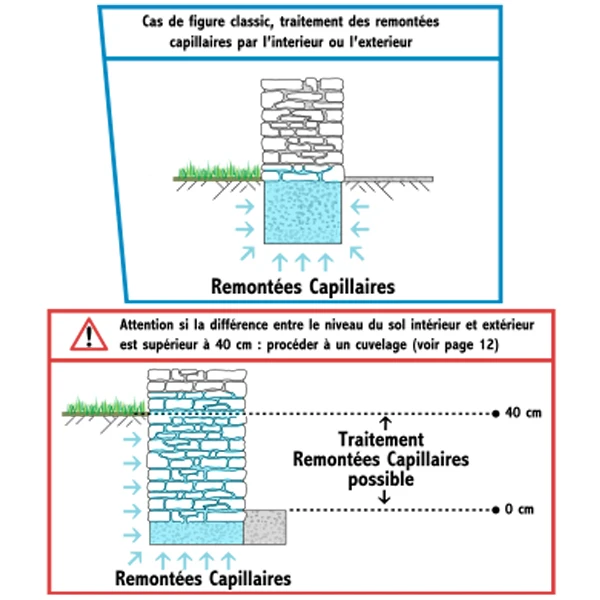 Empêche les remontées d’humidité, le farinage, les carbonatations et la salpêtre
