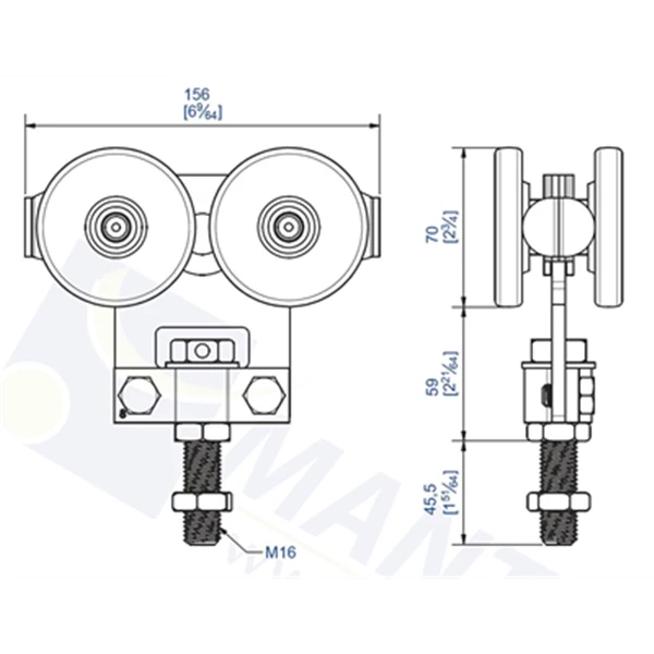 - Monture fixation sur chant, 4 galets en acier montés sur billes