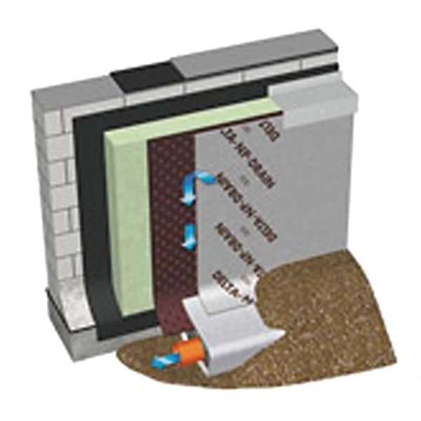 Nappe à excroissances en polyéthylène haute densité associée à un géotextile filtrant en polypropylène thermosoudé sur les excroissances. Destinée à l’établissement d’une couche de protection et drainage dans le cadre de parois enterrées selon le DTU 20.1, de parois moulées ou berlinoises. Elle permet la protection mécanique de membranes d’étanchéité et le drainage horizontal des eaux d’infiltrations dans le cadre de toitures plates (accessibles ou non accessibles piétons, végétalisées, sous voie de circulation avec revêtement pavé ou dalles, …).
