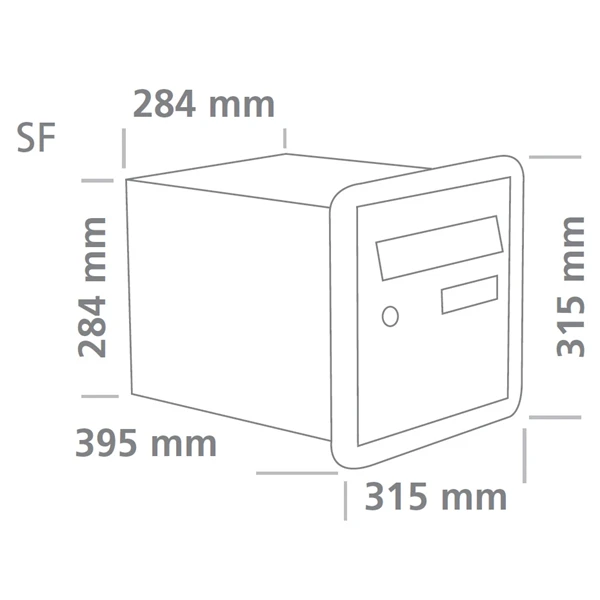 - Fenêtre d’introduction du courrier 235×28 mm avec volet en levant en alu anodisé argent