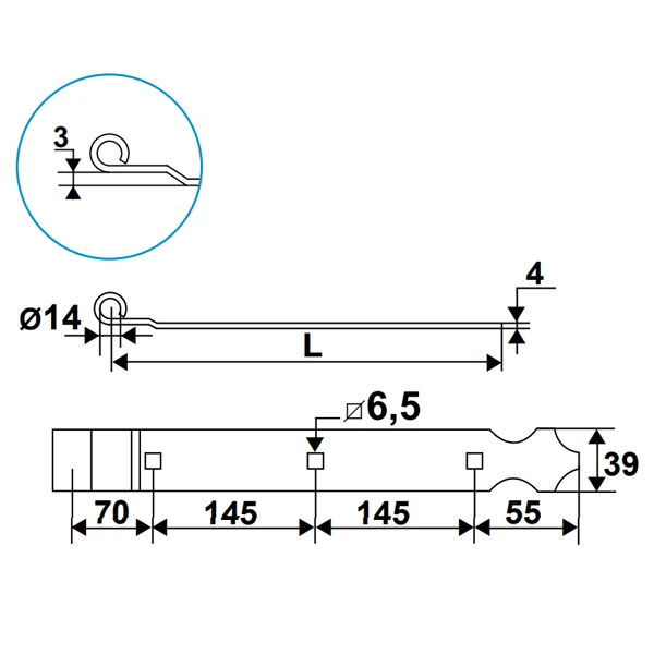 | Distance entre le dernier trou et le bout de la penture | 55 mm |