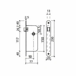 Serrure Tesa T4130 – TĂŞtière Noire – Axe 40 Mm – Entraxe 70 Mm