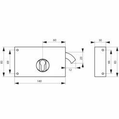 Serrure Applique à Fouillot Tirage Droite 140x88mm Carré 7mm 2 Clés