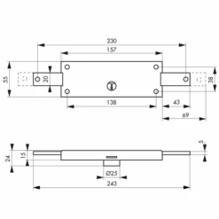 Serrure Applique Double Cylindre Tirage Droite 140mm Axe 70mm 3 Clés