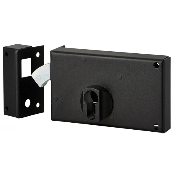 - Coffre et gâche en acier cambré zingué.