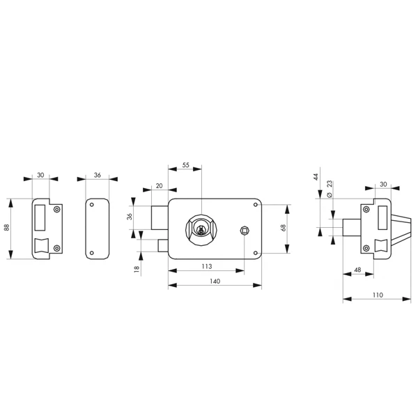 | Hauteur du pêne dormant | 36 mm |