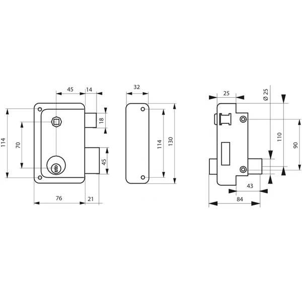 | Largeur du pêne demi-tour | 14 mm |