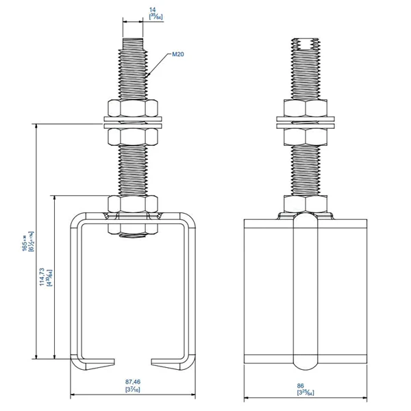 - Support enveloppant tige longue M20